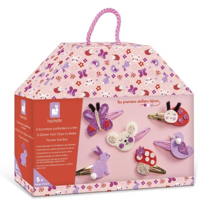 Dans ce coffret créatif très mignon, les enfants découvrent le plaisir de fabriquer leurs propres barrettes scintillantes au thème jardin. Entre papillon, coccinelle, lapin, oiseau, champignon et souris, il y en a pour toutes les envies — et autant d’occasions de briller fièrement sur la tête !