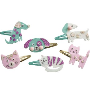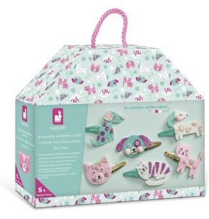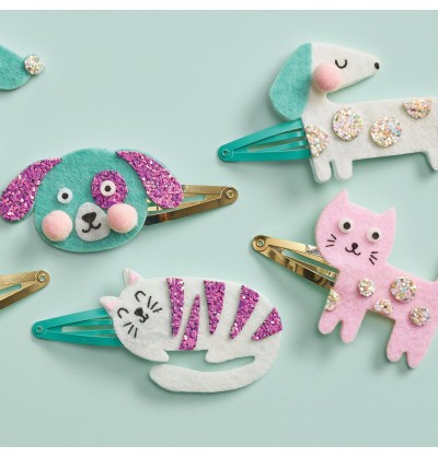 Avec ce coffret créatif adorable, les enfants sont invités à réaliser leurs propres barrettes Little Pets — des petits chats et chiens rigolos et pailletés qu'ils pourront porter comme des accessoires uniques.