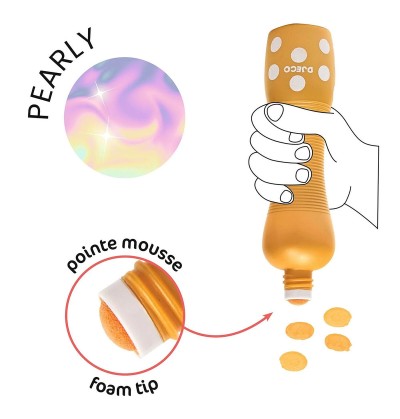 On va faire des grands « spots » nacrés ! Avec les gros marqueurs mousse Pearly, même les taches deviennent élégantes.