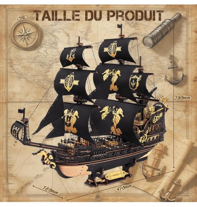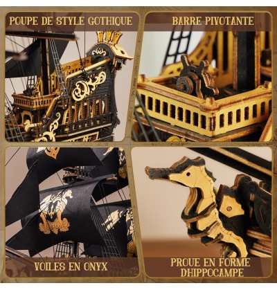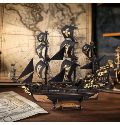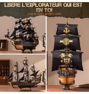 Inspirée par l'esprit audacieux des explorateurs maritimes du XVe siècle, ce puzzle 3D recrée un voilier classique à trois mâts avec de magnifiques voiles noir et or, 13 panneaux de toile et un emblème d'hippocampe doré. Composée de 603 pièces de bois précises, cette maquette rend hommage à l'artisanat, à la navigation et au courage.
