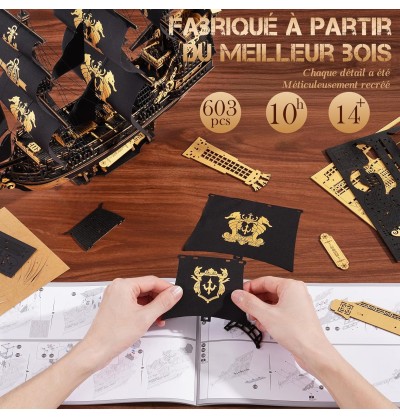 Assemblez 603 pièces en bois découpées au laser avec des emboîtements traditionnels, sans besoin de colle. Ce puzzle en bois pour adultes est accompagné d'instructions illustrées étape par étape pour une expérience immersive – idéal pour les amateurs de maquettes navales et d'activités manuelles.