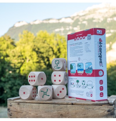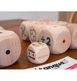 Chaque jeu de détanque ® est composé de : 12 gros dés (Caboules®) de 75mm de côté, 1 Cochodé®, une règle du jeu complète, le carton de transport avec poignée intégrée ! Un jeu sans déchet et 0 plastique.