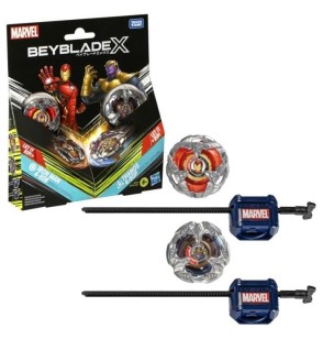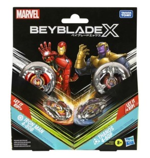 Prépare-toi à des combats épiques avec le multipack Beyblade X Marvel mettant en scène deux légendes de l’univers Marvel : Iron Man et Thanos.