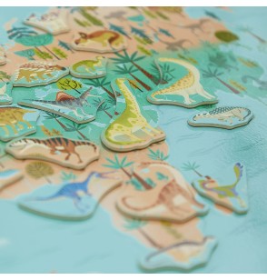 Idéal pour stimuler la curiosité, la motricité fine et l'intérêt pour la paléontologie, ce planisphère peut être suspendu au mur grâce à sa ficelle, ajoutant une touche décorative à la chambre.