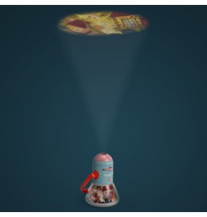 Allumez la lanterne grâce au bouton marche/arrêt. Elle projette immédiatement l’image sur un mur ou au plafond.