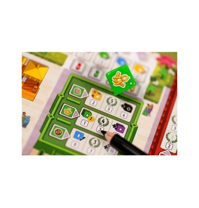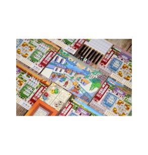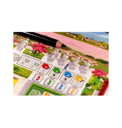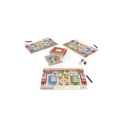 Le matériel est très complet : 10 dés aux couleurs variées, 7 plateaux cités effaçables, 7 crayons, 7 chiffons, un plateau de score, une boîte « Forum », et plusieurs aides de jeu.