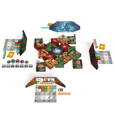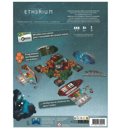 Dans Etherium, les joueurs incarnent l’un des six peuples d’une planète divisée, en lutte pour contrôler la précieuse ressource qu’est l’Éther. Grâce à un plateau modulaire en relief, des corridors éthériques défiant la gravité, et une mécanique de programmation d’actions, chaque partie offre un mélange subtil de stratégie, de gestion de ressources, d’affrontements et de placement.