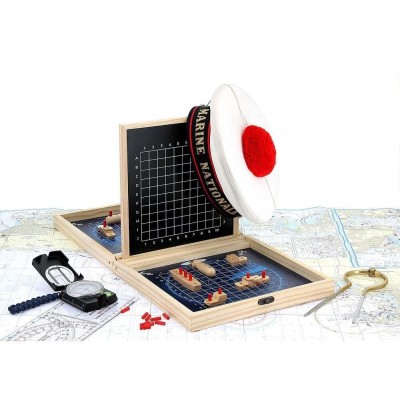 Le coffret comprend tout le nécessaire pour jouer : plateaux de jeu robustes, flotte complète de navires en bois colorés et pions pour marquer les tirs. Les matériaux sont résistants et durables, parfaits pour supporter de nombreuses batailles.