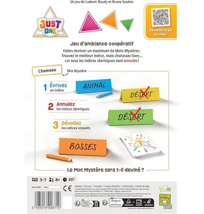 Just One est un jeu d'ambiance coopératif dans lequel les joueurs font deviner collectivement mais sans concertation un mot à un joueur.
