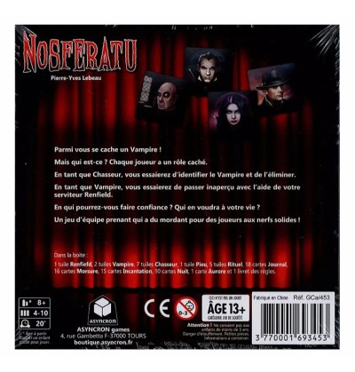 Chaque joueur se voit attribuer un rôle secret : certains incarnent de simples villageois cherchant à survivre jusqu’au lever du jour, tandis que d’autres se glissent dans la peau du redoutable Nosferatu et de ses alliés, prêts à semer la discorde et à éliminer les innocents sans éveiller les soupçons.