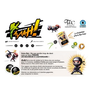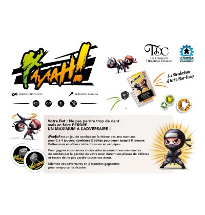 On aime : Un jeu accessible sur un thème rigolo ! Pas besoin d'être un as des arts martieux pour gagner, mais vous pourrez toujours vous vanter d'avoir "fracassé" vos amis après une belle victoire, et ça , ça n'a pas de prix ! Vous pouvez également combiner 2 boites pour jouer jusqu'à 8 joueurs, pour encore plus de fun.. et de bazar !