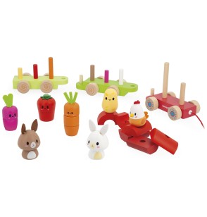 Contenu : 3 wagons + 19 pièces à assembler (animaux et légumes)
