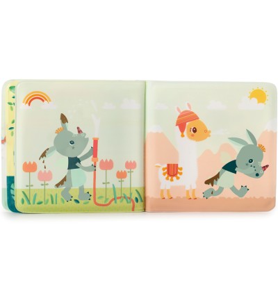 Souple et facile à manipuler, ce livre flotte sur l’eau et se rince aisément après le bain. Il stimule la curiosité, l’imagination et la coordination œil-main, tout en rendant le rituel du bain encore plus joyeux. Les pages douces et colorées invitent à raconter de petites histoires tout en jouant, pour un moment de complicité et d’éveil sensoriel.