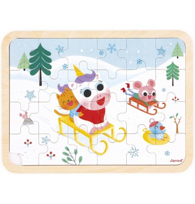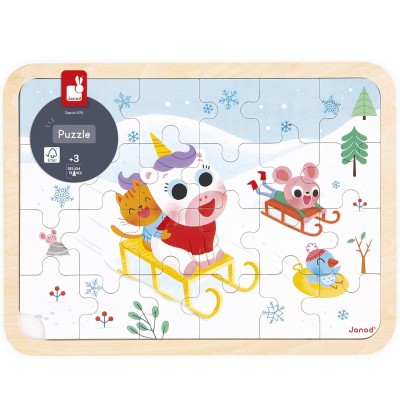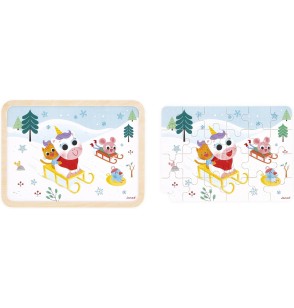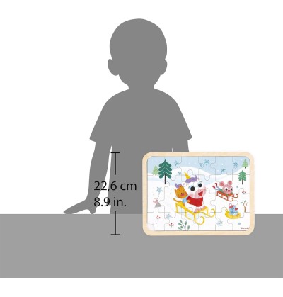 Avec le Puzzle Bois “À la Montagne”, les petits aventuriers prennent de la hauteur et partent à la découverte d’un paysage enneigé plein de charme. Entre les chalets, les sapins et les animaux des sommets, chaque pièce du puzzle raconte une nouvelle histoire.