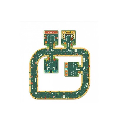 Composé de 21 pièces en carton épais et résistant, le puzzle forme un grand circuit d’environ 63 x 72 cm une fois assemblé, selon les configurations choisies. Les éléments s’imbriquent facilement, permettant de créer des tracés variés – routes droites, virages, croisements – sur lesquels les enfants peuvent ensuite faire circuler leurs véhicules préférés (non fournis).