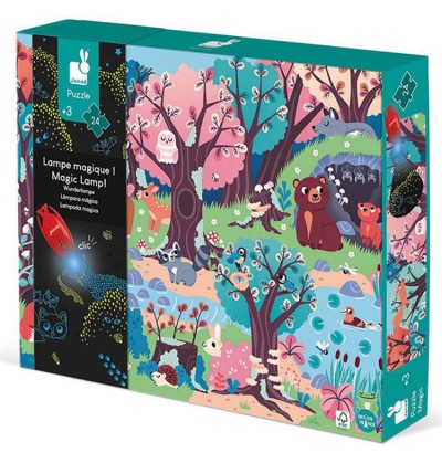 Ce puzzle de 24 pièces permet aux enfants à partir de 3 ans de partir à la découverte des animaux nocturnes grâce à une lampe spéciale qui révèlera plein de détails cachés !