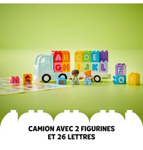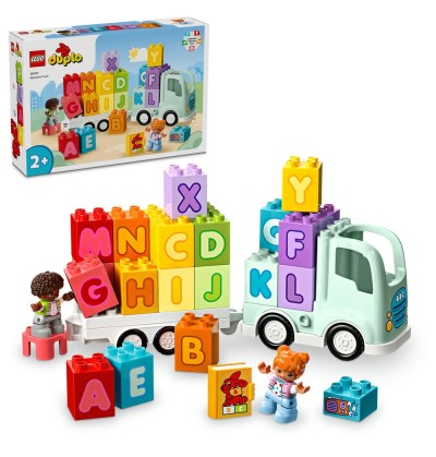 Dès 2 ans, les jeunes explorateurs embarquent dans l’univers ludique de lego duplo avec ce set « Le Camion de l’Alphabet ».