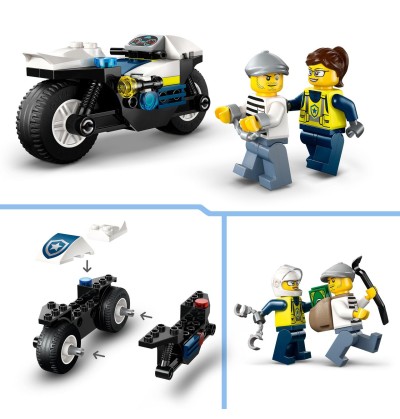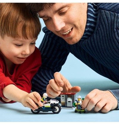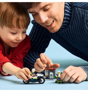 Les garçons et les filles dès 5 ans plongent au cœur de l’action avec le set LEGO City La course-poursuite en moto de police.