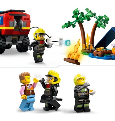 Les garçons et les filles dès 5 ans entrent dans le rôle de sauveteurs avec ce set lego city Le Camion de Pompiers 4x4 et le Canot de Sauvetage.