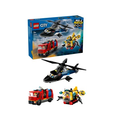 LEGO CITY -HÉLICOPTÈRE, CAMION DE POMPIERS ET SOUS-MARIN MODULABLE - 60462