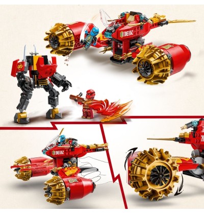 Dès 7 ans, les jeunes constructeurs intègrent l’univers dynamique de lego NINJAGO avec ce set qui combine robot articulé et moto à grande vitesse.
