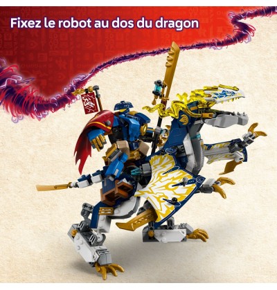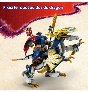 Un duo robot‐dragon déchaîné ! Le robot guerrier et le tout premier dragon‐robot ninjago s’unissent pour former une machine de combat puissante et spectaculaire.