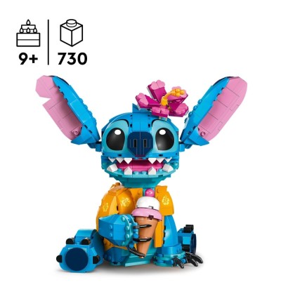 Dans ce set, Stitch est représenté debout, vêtu de sa chemise hawaïenne emblématique, prêt à partager une glace ou à semer un peu de joie autour de lui. La construction offre une expérience accessible et amusante pour les enfants à partir de 9 ans, avec des éléments articulés : la tête peut tourner et les oreilles sont mobiles, permettant de donner vie à différentes expressions selon l’envie. Une fleur colorée peut être ajoutée sur sa tête ou retirée, et l’animal peut tenir le cornet de glace inclus dans le set, ajoutant une touche d’accessoire ludique à votre création.