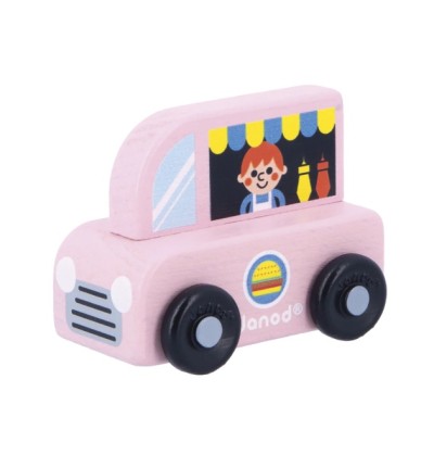 Ce joli camion pastel, au design tendre et vintage, invite les enfants à s’inventer de délicieuses histoires : glaces, gâteaux ou smoothies à emporter, tout est permis quand l’imagination est au volant.