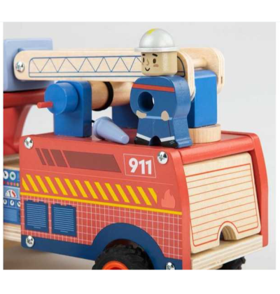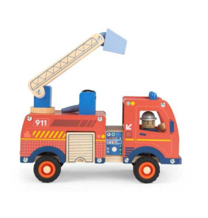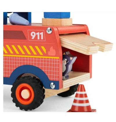 Sirène allumée, ce pompier filant sur ses roues en bois est prêt à sauver toutes les peluches en détresse !