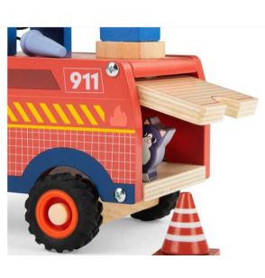 Le Camion de pompier de la collection « Avenue du Moulin » de la marque Moulin Roty est un superbe jouet en bois pensé pour les enfants à partir de 3 ans.